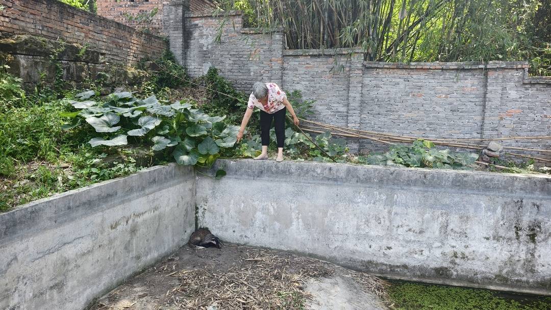 哺乳期猪獾溜进村民家觅食 村民救助后将其放生